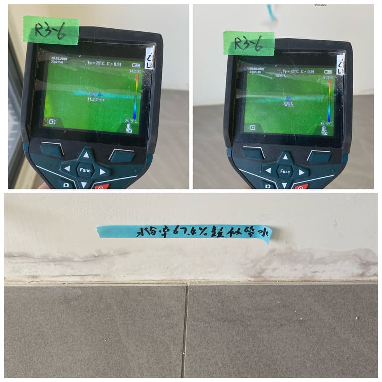 浴室水測後牆面下方滲漏熱顯像異常