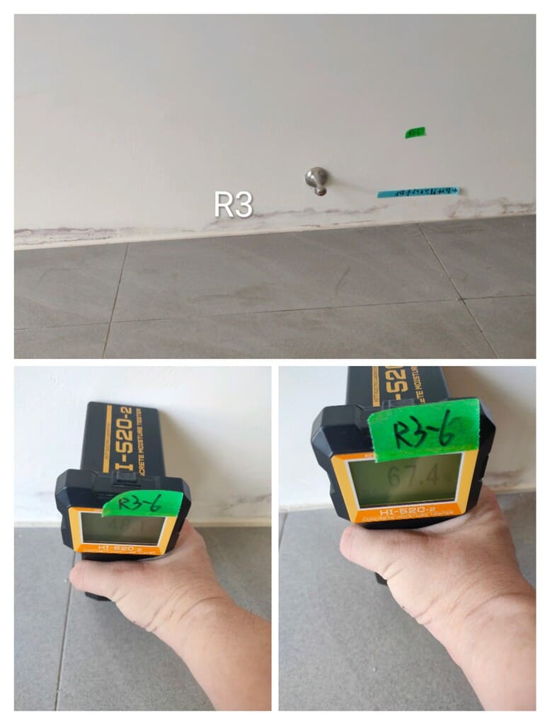 浴室外牆(ALC)下緣潮濕水分率67.4超標