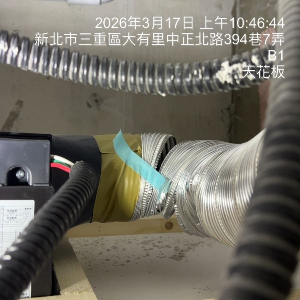 天花板內風管未固定