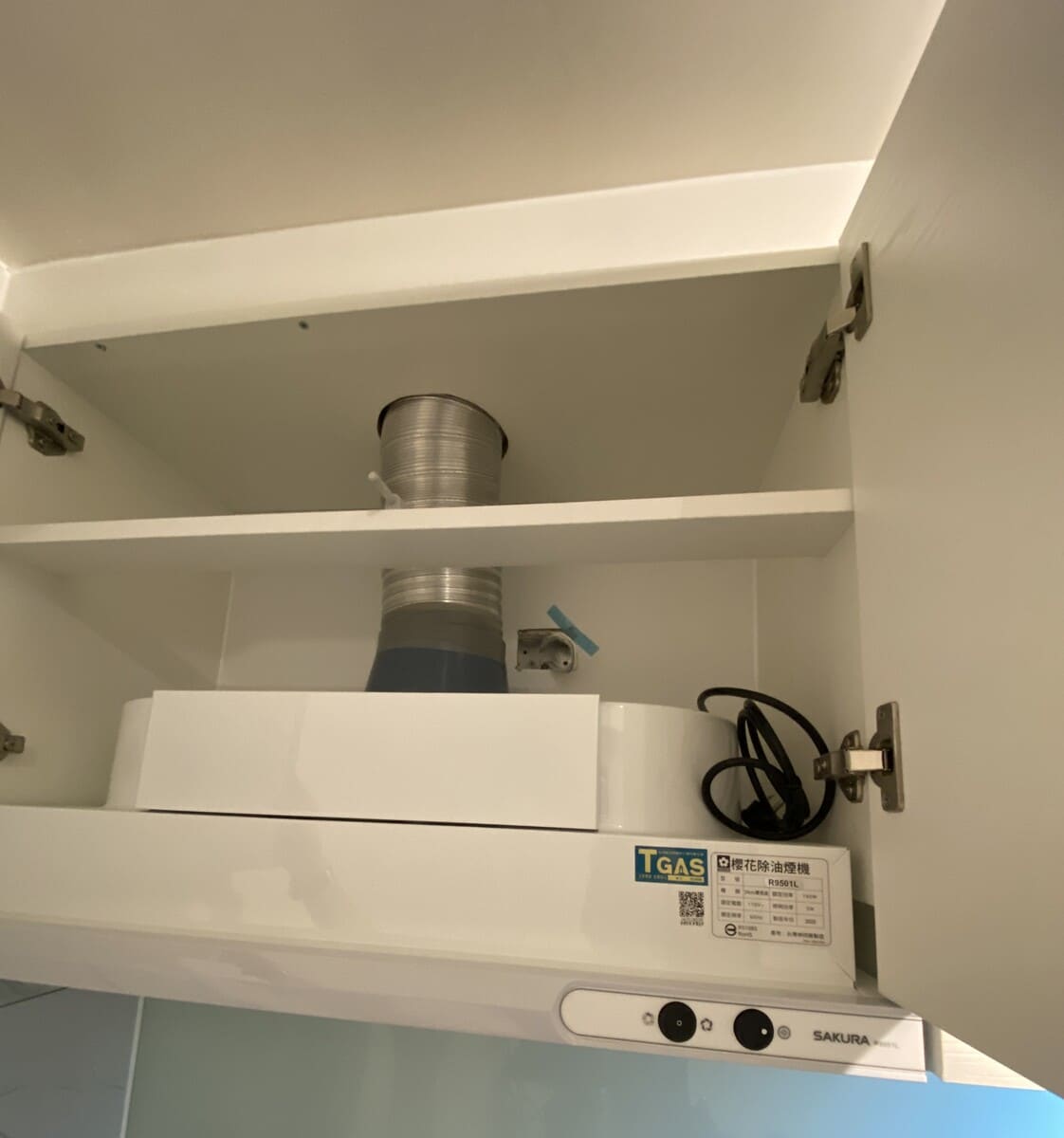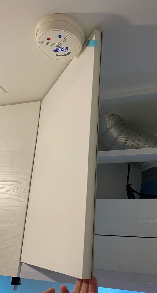 排油煙機上方櫥櫃左側門扇開啟卡瓦斯偵測器